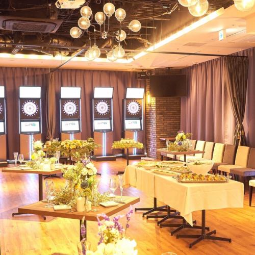 彷彿置身於超凡脫俗的空間!在如同俱樂部般時尚的成人遊樂場,盡情享受飛鏢和飲品的派對吧。配備飛鏢靶、顯示器、投影機等!還有豐富的單點菜餚,可搭配飲品!非常適合舉辦婚宴等活動!